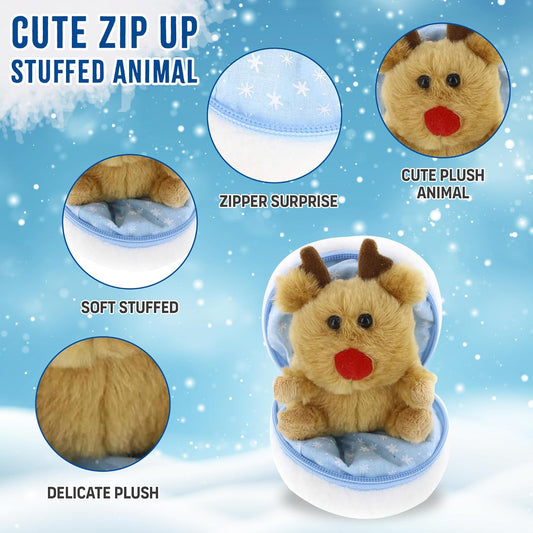 Snowball Zip up Surprise Egg Stuffed Animal – 6 Inch – Cute and Soft Plush Toy Assortment for Friends Family All Ages – Spring Holidays Birthday Christmas (Reindeer)